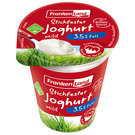 Unsere klassische Joghurt-Variante: Stichfester Frankenland Joghurt schmeckt zum Frühstücksmüsli, mit Früchten, in Salatdressings oder einfach auch mal pur zwischendurch.