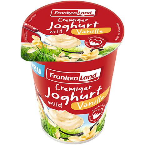 Frischer Frankenland-Joghurt und der unverwechselbar feine Geschmack von Vanille ergeben ein Geschmackserlebnis, das selbst verwöhnte Gaumen begeistert. Unser Frankenland Joghurt Vanille überzeugt durch ausgewählte Rohstoffe und eine sorgfältige Verarbeitung. Da schmeckt man die Erfahrung und die Liebe zur Milch!