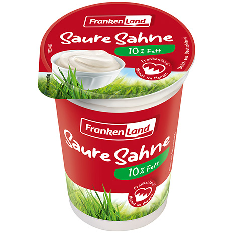 Mit nur 10 % Fett ist Frankenland Saure Sahne besonders kalorienarm, dabei reich an Geschmack und eine ideale Zutat z. B. für Saucen und Salatdressings.