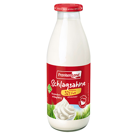 Die Frankenland Schlagsahne in der Glasflasche ist die Qualitäts-Zutat für viele klassische und kreative Rezepte. Sie veredelt in flüssiger Form Saucen, Suppen und Aufläufe mit einem cremig milden Geschmacks-Extra und lässt sich auch sehr gut aufschlagen.