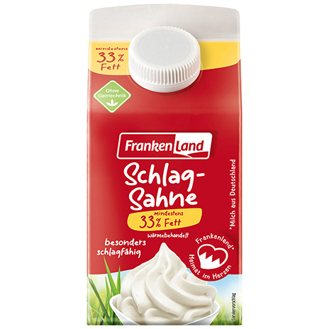 Die Frankenland Schlagsahne ist die Qualitäts-Zutat für viele klassische und kreative Rezepte. Sie ist perfekt zum Aufschlagen geeignet. Und veredelt in flüssiger Form Saucen, Suppen und Aufläufe mit einem cremig milden Geschmacks-Extra.