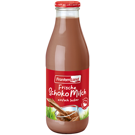 Die gute Frankenland Milch gibt es auch als frische Schokomilch in der Glasflasche mit mindestens 3,8 % Fett. Das schmeckt der ganzen Familie – warm oder kalt!