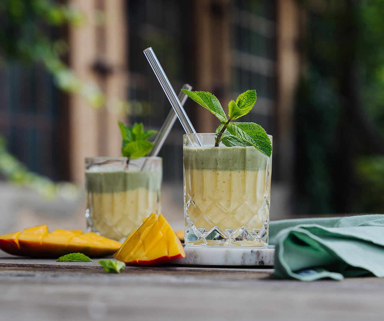 Joghurt-Shake mit Mango und Minze