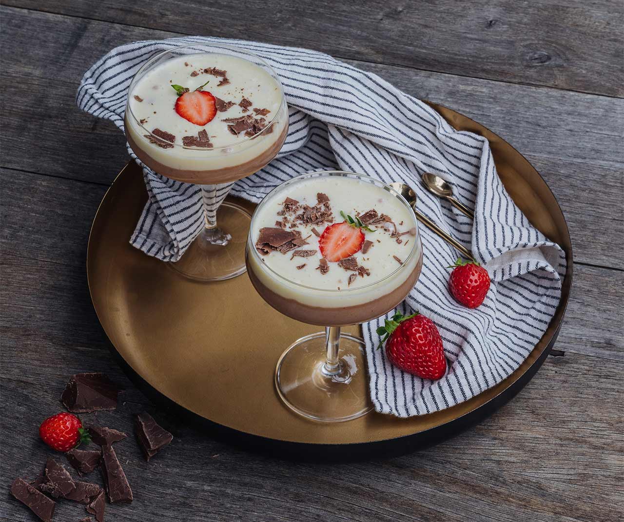 - Die Mousse auf Desssertgläser verteilen. Im Kühlschrank abkühlen lassen.